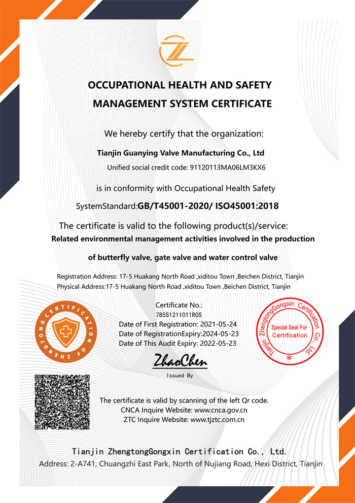 職業(yè)健康安全管理體系證書--英文